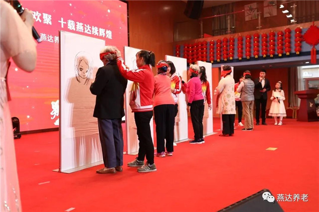 養(yǎng)護(hù)中心精心策劃具有互動性、娛樂性,聯(lián)絡(luò)情感,提高長者身體協(xié)調(diào)性的《畫鼻子》游戲。現(xiàn)場氣氛熱鬧非凡,喜氣洋洋。