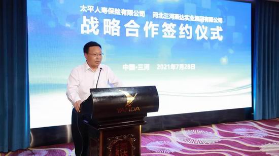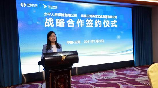 7月28日下午,太平人壽保險(xiǎn)有限公司與河北三河燕達(dá)實(shí)業(yè)集團(tuán)有限公司在燕達(dá)國際健康城隆重舉行戰(zhàn)略合作簽約儀式。雙方將攜手在醫(yī)療健康產(chǎn)業(yè)、聯(lián)合營銷、長期養(yǎng)老服務(wù)、保險(xiǎn)服務(wù)等方面進(jìn)行深度合作,打造出“保險(xiǎn)金融+康養(yǎng)服務(wù)”的融合創(chuàng)新合作模式。燕達(dá)金色年華健康養(yǎng)護(hù)中心副總經(jīng)理李東輝擔(dān)任活動(dòng)主持。